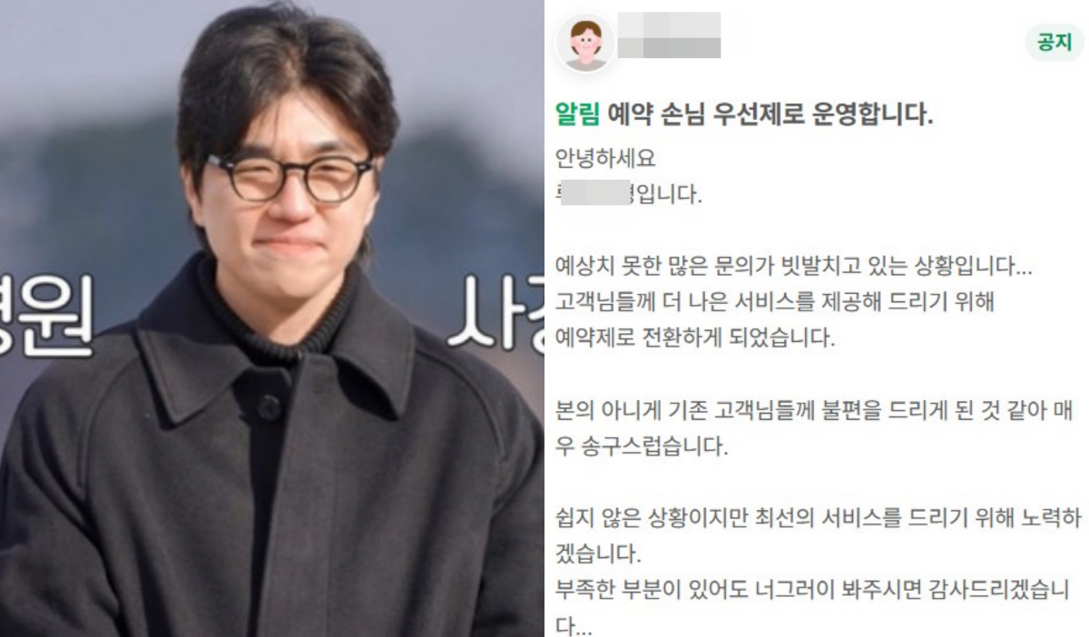 최근 온라인 커뮤니티와 SNS를 중심으로 경수가 운영하는 수원 안경점 관련 문의가 급증하고 있는 가운데 실제 매장 측 공지까지 등장해 눈길을 끌었다. 공개된 안내문에는 "예약 손님 우선제로 운영합니다"라는 문구와 함께 "예상치 못한 많은 문의가 빗발치고 있는 상황"이라며 예약제로 전환됐다는 내용이 담겼다.