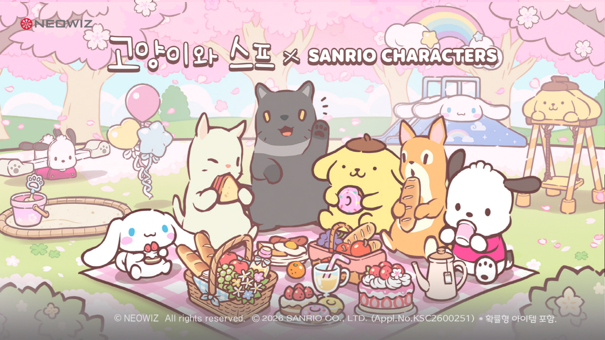 네오위즈는 자사가 서비스하는 힐링 모바일 방치형 게임 '고양이와 스프(Cats & Soup)'와 글로벌 인기 캐릭터 '산리오캐릭터즈'의 컬래버레이션을 진행한다고 밝혔다.