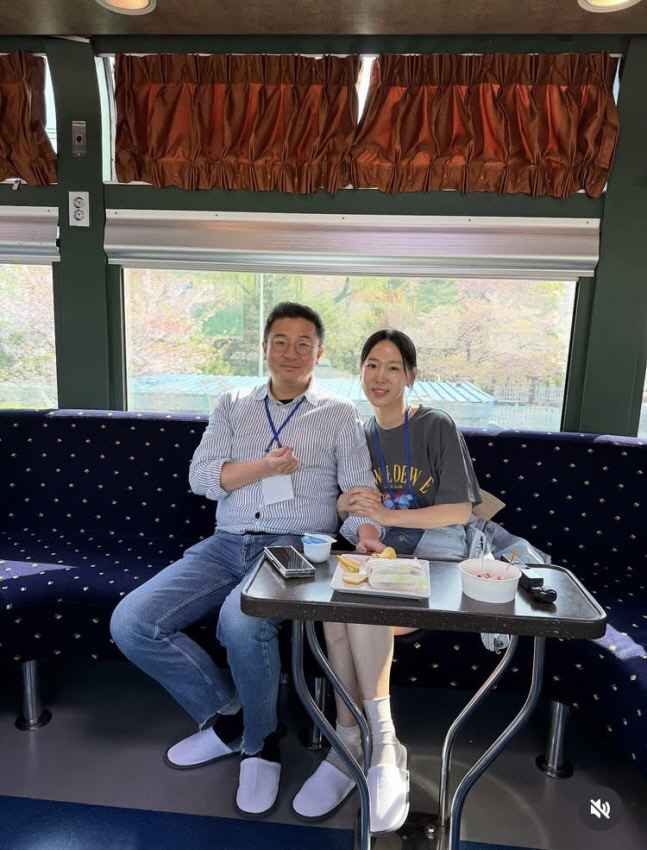 공개된 사진에는 열차 내부에서 여유로운 시간을 보내는 두 사람의 모습이 담겼다. 문재완은 창가 좌석에 앉아 노트북을 펼쳐두고 음료를 곁들인 채 이동 중 업무와 휴식을 동시에 즐기는 모습을 보였다. 또 다른 사진에서는 이지혜가 객실 침대 위에 앉아 환하게 웃으며 포즈를 취하고 있어 편안한 여행 분위기를 전했다. 이어진 컷에서는 두 사람이 나란히 앉아 간단한 식사를 하며 다정한 시간을 보내고 있어 부부의 여유로운 일상이 눈길을 끈다.