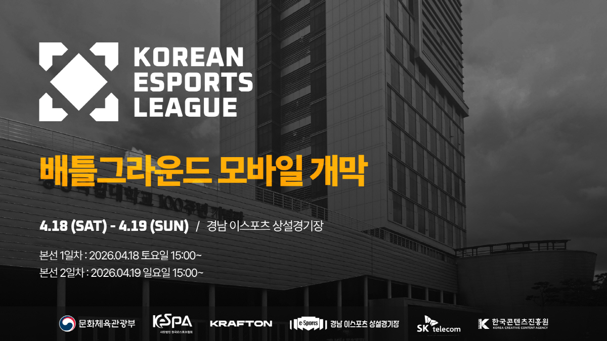 개막전은 18~19일 오후 3시에 열린다. 별도 예매 없이 무료로 관람할 수 있으며, 경기 종료 후 추첨을 통해 현장 관람객에게 시디즈 GX 게이밍 의자, 보조배터리 등 경품을 증정하는 이벤트도 마련돼 있다. 본선 중계는 심지수 캐스터와 박동진 해설이 함께 하며, 경기는 KEL 공식 네이버 치지직, SOOP, 유튜브와 '배틀그라운드 모바일' 이스포츠 공식 유튜브 채널에서 생중계 된다. 한편 2026 KEL 개막전은 문화체육관광부가 주최하고 한국e스포츠협회와 크래프톤이 공동 주관하며, 경남 이스포츠 상설경기장, SK텔레콤, 한국콘텐츠진흥원이 후원한다.