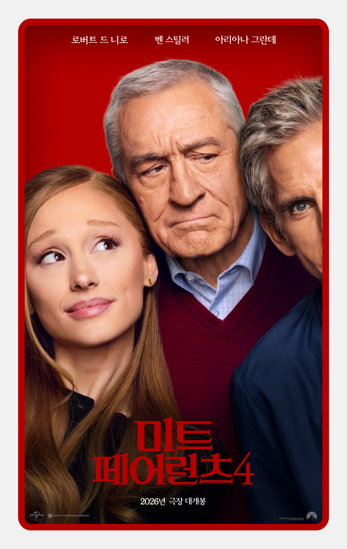공개된 포스터는 캐릭터들의 미묘한 긴장감을 통해 시리즈 특유의 거침없는 웃음과 좌충우돌 전개에 대한 흥미를 끌어올린다. 특히 그렉 역 벤 스틸러의 존재감과, 잭을 연기한 로버트 드 니로가 사위를 못마땅한 표정으로 바라보는 모습이 웃음을 유발하는 가운데, 당당하고 흔들림 없는 태도의 올리비아 역의 아리아나 그란데가 대비를 이뤄 이들이 펼쳐갈 이야기에 대한 궁금증을 높인다.