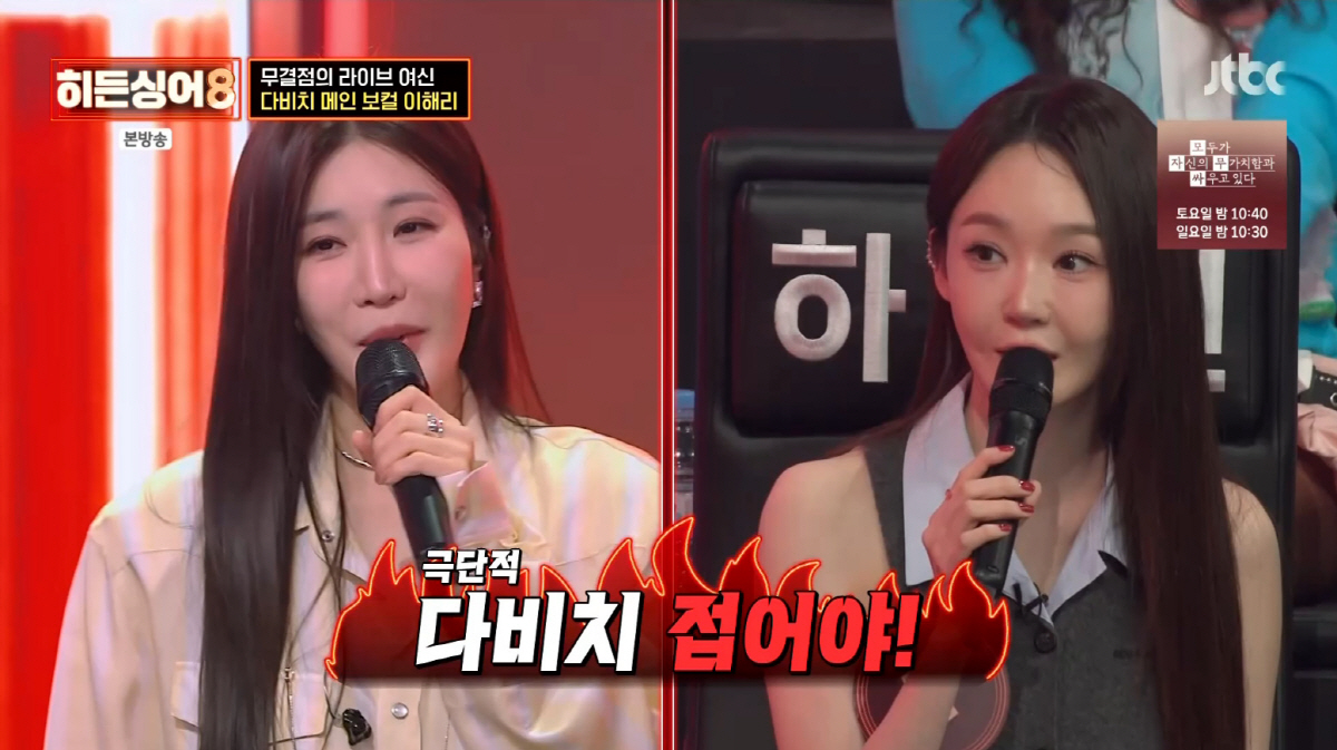 21일 방송된 JTBC '히든싱어8' 4회에서는 믿고 듣는 음원 강자 다비치의 이해리가 원조 가수로 나서 모창능력자들과 완벽한 화음을 선사했다.