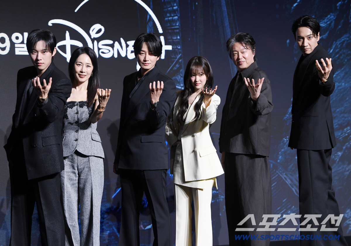27일 오전 서울 영등포구 여의도 콘래드 서울 호텔 그랜드볼룸에서 디즈니+ 오리지널 시리즈 '골드랜드'(황조윤 극본, 김성훈 연출) 제작발표회가 열렸다. 이날 제작발표회에는 욕망에 눈을 뜬 세관원 김희주 역의 박보영, 속내를 종잡을 수 없는 희주의 위험한 동업자 우기 역의 김성철, 희주를 불법밀수 사건에 휘말리게 한 연인 이도경 역의 이현욱, 폭력 조직과 유착된 비리를 반복하며 살아가는 경찰 김진만 역의 김희원, 희주를 홀로 키워온 엄마 여선옥 역의 문정희, 사라진 금괴를 되찾기 위해 희주를 집요하게 쫓는 조직 간부 박 이사 역의 이광수, 그리고 김성훈 감독이 참석했다.