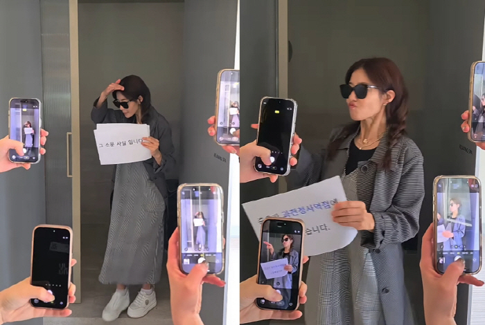 공개된 영상 속 이지현은 선글라스를 착용한 채 쏟아지는 카메라 플래시를 진지하게 피하는 연기를 선보였고, "그 소문 사실입니다"라는 문구가 적힌 종이를 들고 등장해 시선을 끌었다.