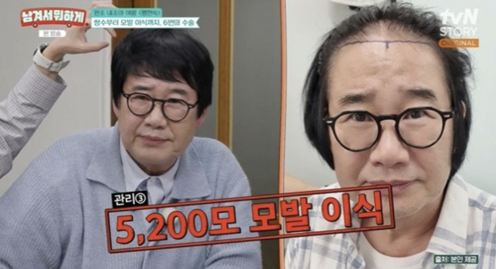 이어 그는 "얼마 전에 당겼다. 32바늘 안면 거상술을 했다. 몇 달은 20대 같았다. 앞머리가 M자로 빠지기 시작하는 거다. 5200모를 심었다. 가만히 있으면 제3자가 겁을 먹을 수 있다. 화가 난 것 같다. 그래서 입꼬리 수술을 해서 올려줬다"며 다양한 시술 과정을 덧붙였다.