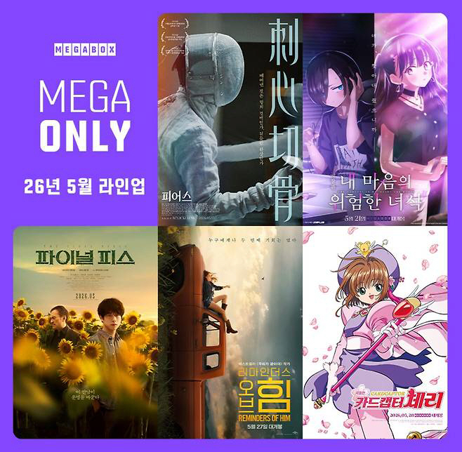 [스포츠조선 안소윤 기자] 메가박스의 단독 상영작 브랜드 '메가 온리(MEGA ONLY)'가 5월 라인업을 공개했다.