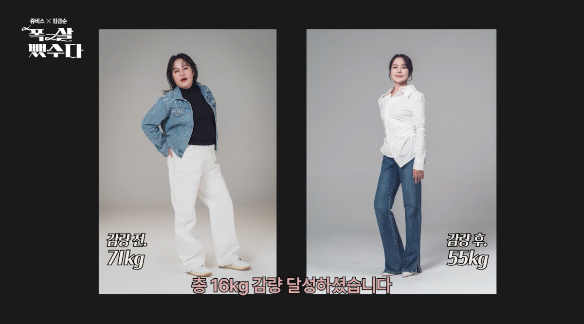 28일 '쥬비스다이어트' 유튜브 채널에는 '기적을 봤습니다. 53세 배우 김금순, 갱년기 뚫고 16kg 감량 성공! (34인치→27인치)'이라는 제목의 영상이 공개됐다.