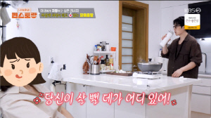 그야말로 신박한 레시피가 쏟아진 가운데 눈길을 끈 것은 김강우가 요리 중 등장한 아내 '무영씨'였다. 한식조리기능사 자격증 보유자라는 김강우의 아내는 남편의 요리 과정을 지켜보며 티격태격해 웃음을 줬다. 김강우는 아내가 등장하자마자 말투까지 바뀌며 '애교 강우'로 변신해 놀라움을 자아냈다. 티격태격과 달달함을 넘나드는 동갑내기 부부의 모습이 훈훈함을 안겼다.
