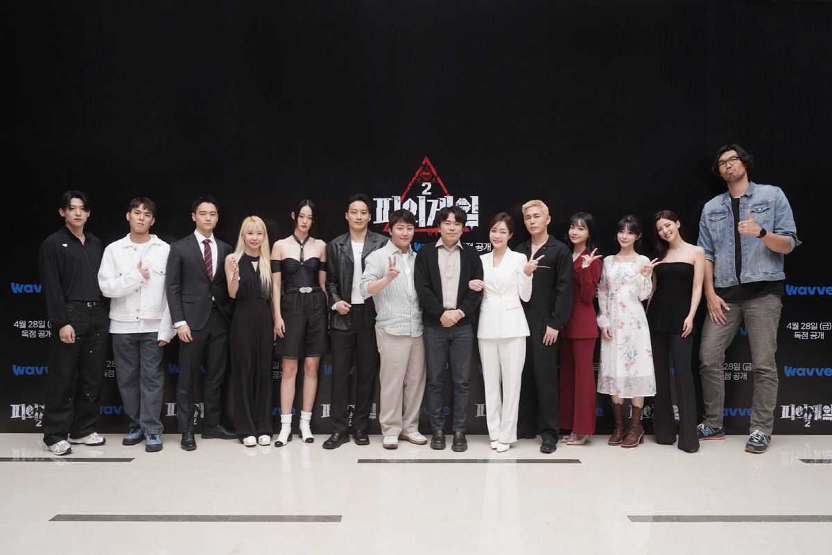 웨이브는 새 예능프로그램 '피의 게임2'의 제작발표회를 25일 오후 서울 영등포구 콘래드 서울에서 진행했다. 행사에는 현정완 PD와 홍진호, 하승진, 덱스, 박지민, 파이, 넉스, 신현지, 이진형, 유리사, 현성주, 윤비, 후지이 미나, 케리건 메이 등이 참석했다.