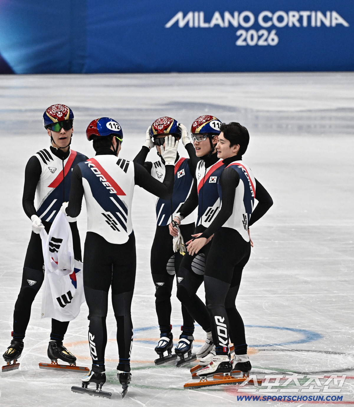 21일(한국시간) 이탈리아 밀라노 스피드스케이팅 아레나에서 열린 밀라노동계올림픽 쇼트트랙 남자 5000m 계주 결승전. 결승전 경기 나서는 황대헌, 이정민, 이준서, 임종언. 밀라노(이탈리아)=송정헌 기자songs@sportschosun.com/2026.02.21/