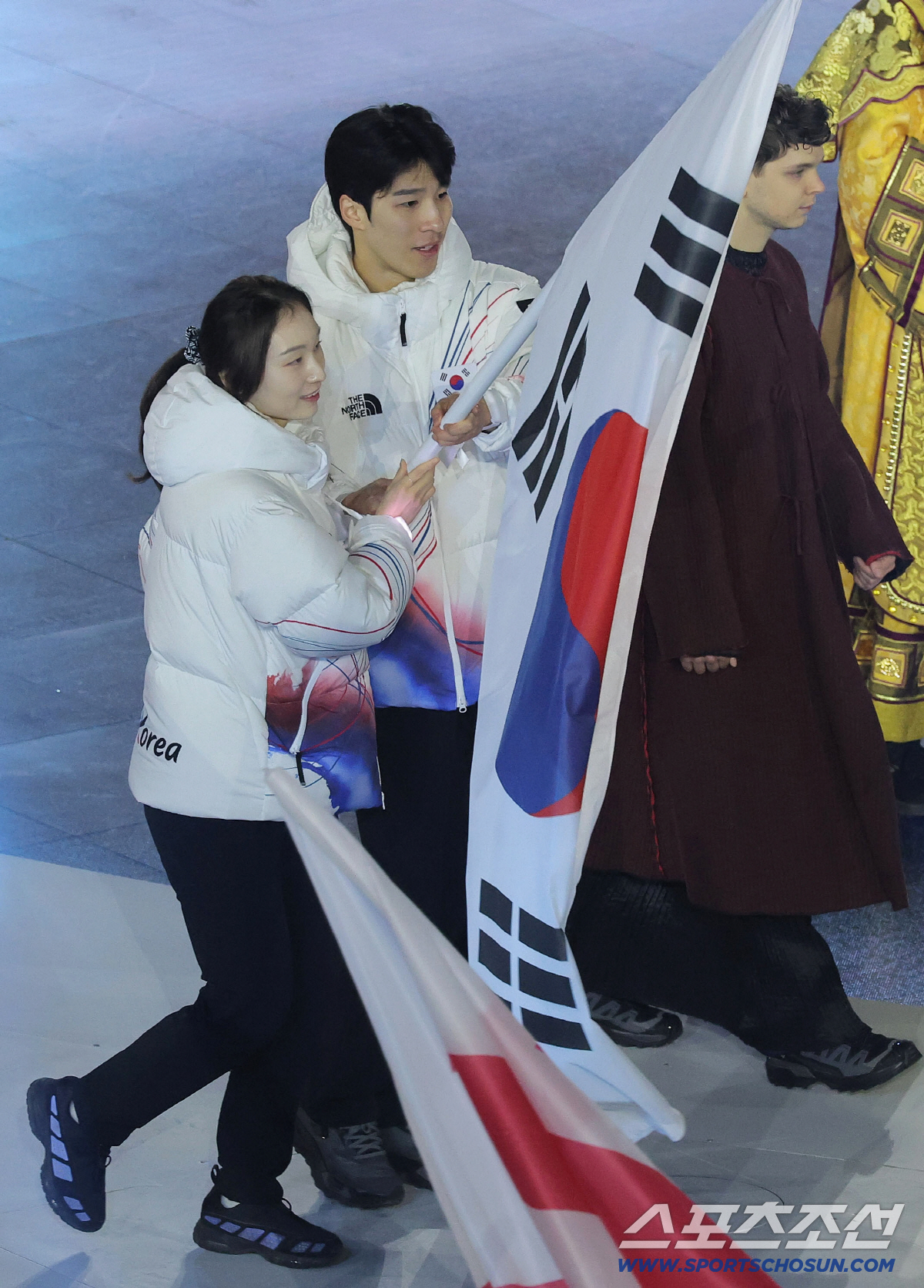최민정과 황대헌이 기수를 맡았다. 최민정은 이번 대회에서 쇼트트랙 여자 3000m 계주 금메달과 1500m 은메달을 목에 걸었다. 역대 한국 선수를 통틀어 동·하계 올림픽 최다 메달 신기록을 세웠다. 1500m 금메달 불발로 쇼트트랙 사상 최초 올림픽 단일 종목 3연패는 실패했으나, 2018 평창, 2022 베이징에 이어 이번 2026년 밀라노-코르티나 대회까지 통산 7개의 메달을 수확했다. 진종오(사격), 김수녕(양궁), 이승훈(스피드스케이팅·이상 6개)을 제치고 최다 메달 주인공으로 우뚝 섰다. 황대헌은 이번 대회에서 1500m, 5000m 계주 등 은메달만 2개를 수확, 개인 통산 5개(금1, 은4)의 메달을 기록했다. 이로써 황대헌은 이호석(금1, 은4)과 함께 한국 남자 쇼트트랙 최다 메달 타이기록을 썼다.