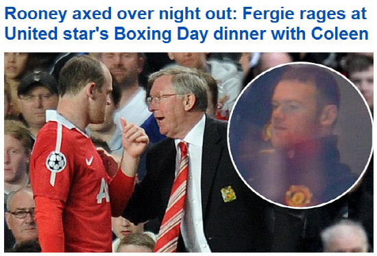 루니는 27일 위건과의 경기에서 5대0 승리를 거둔 후 아내 콜린과 팀 동료 조니 에반스, 대런 깁슨 커플과 함께 박싱데이 파티를 한 것으로 알려졌다. 이같은 소식은 곧바로 퍼거슨 감독의 귀에 들어갔고, 퍼거슨 감독은 진노하며 휴식일이었던 29일 훈련을 지시했다. 루니는 30일 블랙번전 결장과 벌금을 통보받았고, 즉각 정당치 못한 처사라며 불만을 토로한 것으로 알려졌다.