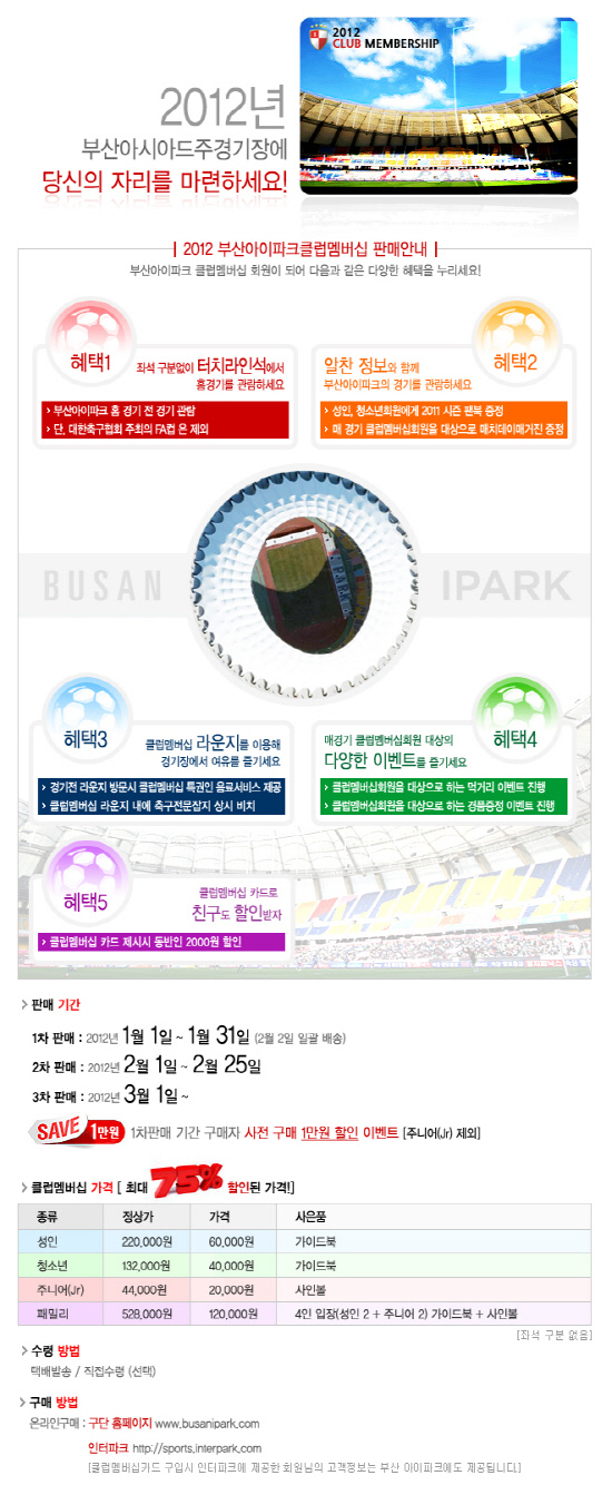 부산 아이파크가 2012년 1월 1일 오후 2시부터 2012 시즌권 판매를 시작했다.