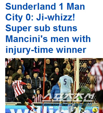 '초호화군단' 맨시티를 격침시킨 '대한민국 유망주' 지동원(21·선덜랜드)의 예기치 못한 한방에 영국 언론이 들썩이고 있다.