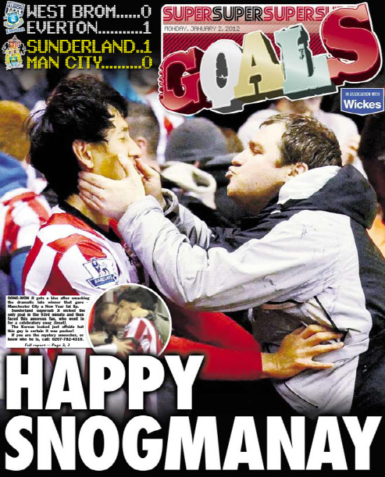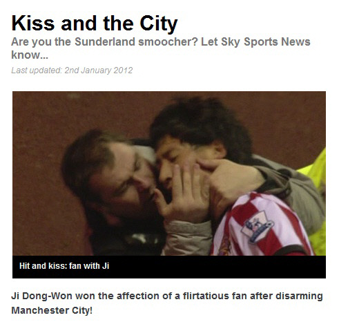 지동원이 2일(이하 한국시각)선덜랜드 홈에서 열린 2011~2012시즌 잉글랜드 프리미어리그(EPL) 19라운드 맨시티전 후반 48분 짜릿한 버저비터 결승골(1대0)을 쏘아올리던 바로 그순간, 흥분을 감추지 못하고 그라운드에 난입한 한 남성 관중이 지동원에게 뜨거운 키스를 날렸다. 한시즌이 펼쳐지는 동안 버저비터는 자주는 아니지만 심심치 않게 볼 수 있다. 그러나 감격에 못이겨 골넣은 선수의 뺨도 아닌 입술에다 키스를 시도하는 장면은 축구종가 잉글랜드에서도 극히 드문 장면이다.