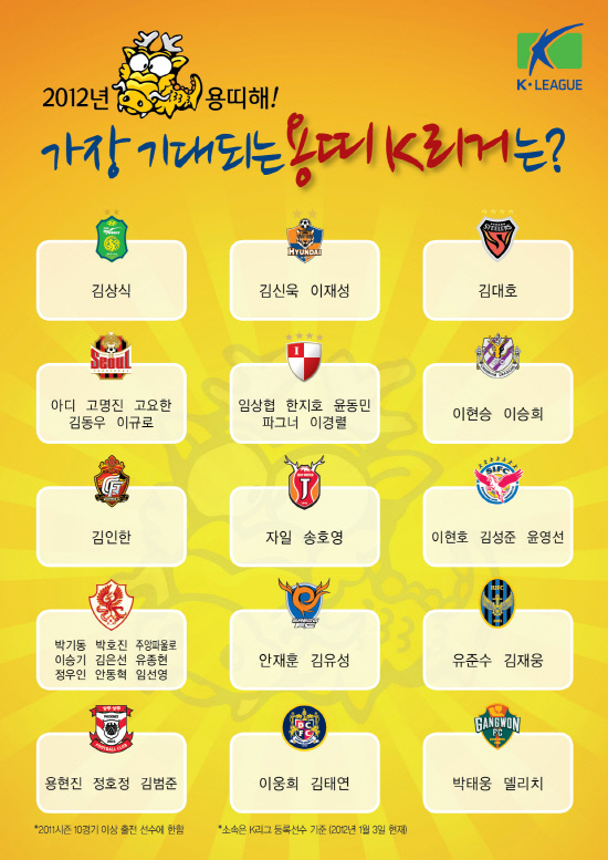 프로축구연맹이 2012년 용의 해를 맞아 '가장 기대되는 용띠 K-리거는'이라는 주제로 설문 조사를 진행한다.