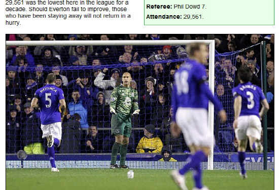 하워드는 수비수가 내준 볼을 페널티박스 안에서 공격진을 향해 길게 찼다. 강한 바람을 탄 이 공은 상대 페널티박스 정면에서 크게 튀어올랐고, 골문을 비우고 나온 볼턴의 애덤 보그단 골키퍼의 키를 넘어 골문으로 빨려들어갔다. 하워드의 프로 첫 득점인 이 골은 93m로 올시즌 EPL 최장거리골로 기록됐다.