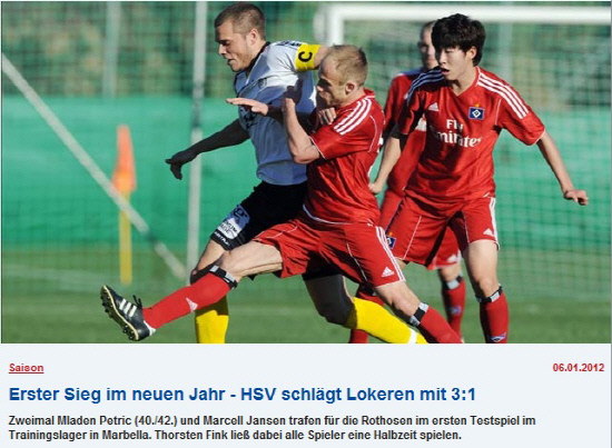 핑크 함부르크 감독은 컨디션 점검 차원에서 전반과 후반 스쿼드를 둘로 나눠 로케렌을 상대했다. 전반 38분과 40분 페트리치가 연속골을 뽑아냈고, 후반 7분에는 얀센이 3번째 골을 성공시켰다. 후반 30분 한 골을 내줬지만, 결국 함부르크는 3대1로 새해 첫 기분좋은 승리를 차지했다.