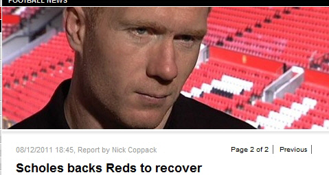 스콜스는 2010~2011시즌을 끝으로 17년간 정들었던 맨유 유니폼을 벗고 2군 코칭스태프로 활약하고 있다. 은퇴 선수의 복귀 가능성 제기만으로도 맨유가 현재 처하고 있는 상황이 얼마나 암울한지 잘 보여준다.