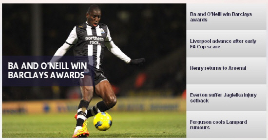 뉴캐슬 돌풍의 주역 뎀바 바는 EPL 12월의 선수상을 수상했다. 바는 12월 한달동안 열린 EPL 6경기에서 5골을 터트리며 최고의 활약을 보였다. 웨스트햄에서 자유계약으로 뉴캐슬 유니폼을 입은 바는 올 시즌 리그 19경기에 출전해 15골을 득점하며 로빈 판 페르시(17골)에 이어 득점 순위 2위를 달리고 있다. 5일 맨유와의 홈경기에서 선제골을 터뜨리며, 뉴캐슬이 11년만에 맨유를 꺾는데 일조했다.