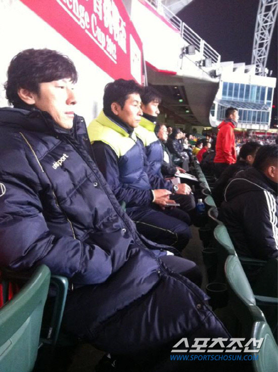| ◇23일 홍콩 아시아챌린지컵 광저우부리와의 첫경기에서 5대1로 대승한 직후 신태용 감독, 김도훈 코치, 차상광 골키퍼 코치등성남의 코칭스태프들은 경기장을 떠나지 않았다. 이어진 시미즈와 사우스차이나의 경기를 관전하며 결승전을 위한 전력 분석 및 작전 구상에 들어갔다. 사진 출처=성남일화 공식 트위터 |