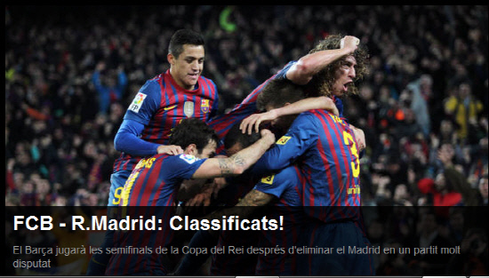 바르셀로나는 26일(한국시각) 홈구장 누캄프에서 가진 레알 마드리드와의 2011~2012시즌 코파델레이 8강 2차전에서 2대2로 비겼다. 1차전에서 레알 마드리드를 2대1로 꺾었던 바르셀로나는 종합전적 1승1무를 기록하며 4강 출전권을 손에 넣었다. 레알 마드리드는 이날 바르셀로나에게 먼저 두 골을 내주고도 동점을 만드는 저력을 발휘했으나, 끝내 바르셀로나의 벽을 넘지 못했다.