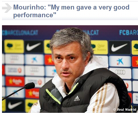 그러나 이같은 성과에도 불구하고 무리뉴 감독은 여전히 스페인 언론과 불편한 관계를 이어갔다. 그는 레알 마드리드 팬들이 오늘 보인 경기력에 자부심을 느낄 것 같냐고 묻자 "모르겠다. 당신들이 거리에서 설문조사를 해보라. 당신들이 팬들의 감정을 컨트롤하지 않느냐"고 반문했다. 경기 분석 문제에 대해서도 "당신들이 나보다 축구를 잘 이해하지 않느냐. 내가 스포츠 신문을 열독하거나 라디오를 열심히 듣는 편은 아니지만 이번에는 당신들의 칼럼과 의견이 어떤지 꼭 지켜보겠다"고 퉁명스럽게 말했다.