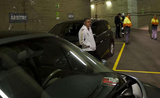 ◇조제 무리뉴 레알 마드리드 감독이 바르셀로나전 뒤 주차장으로 달려가 주심에게 욕설을 퍼부어 논란이 일고 있다. 바르셀로나전을 마친 뒤 경기장 주차장에서 심판진을 기다리는 무리뉴 감독. 사진출처=문도데포르티보 홈페이지