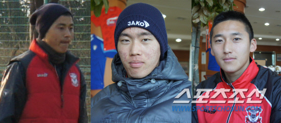 | 상주 상무의 백지훈 이종성 김민수(왼쪽부터) 남해=하성룡 기자 |