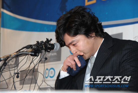 '반지의 제왕' 안정환이 영원히 축구화를 벗었다. 31일 서울 리츠칼튼 호텔에서 열린 은퇴 기자회견에서 안정환이 선수 시절을 회상하다 눈물을 흘리고 있다.