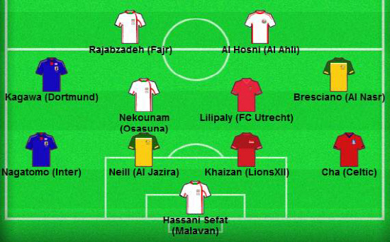 한편, 1월 베스트 11의 공격수 투톱으로는 메흐디 라자브자데흐(파이르 세파시), 아마드 알 호스니(알 알리)가, 미드필더로는 일본의 신성 가가와 신지(도르트문트) 자바드 네쿠남(오사수나) 스테파노 릴리팔리(위트레흐트) 마크 브레시아노(알 나스르), 수비수로는 유토 나가토모(인터밀란) 루카스 닐(알 자지라) 바이하키 카이잔(라이온스)가 꼽혔다.