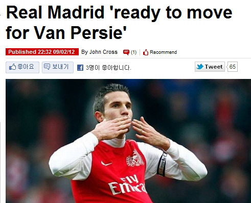 10일(한국시각) 영국 일간지 데일리미러는 스페인 언론 마르카지의 보도를 인용, 레알 마드리드가 조제 무리뉴 감독이 팀을 떠날지라도 판 페르시를 영입할 것이라고 보도했다. 무리뉴 감독은 인터밀란을 이끌 당시에도 판 페르시의 영입을 시도한 바 있다.