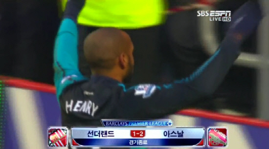 선덜랜드는 12일 새벽(한국시각) 홈구장인 스타디움 오브 라이트에서 펼쳐진 잉글랜드 프리미어리그(EPL) 25라운드 경기에서 아스널에 혈투끝에 1대2로 역전패했다. 후반 인저리타임 시작과 함께 아르샤빈의 패스를 이어받은 티에리 앙리의 역전골이 터졌다. 앙리는 임대 마지막 경기에서 '친정' 아스널에 천금같은 승리를 선물했다.