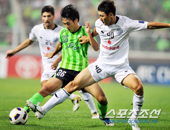 | 지난해 12월 알사드와의 아시아챔피언스리그 결승전에서 이정수와 볼을 다투고 있는 전북 서정진(오른쪽에서 두번째).전준엽 기자 noodle@sportschosun.com |
