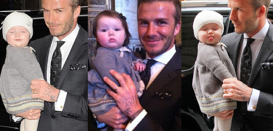 베컴 품에 안긴 하퍼는 눈이 부신 듯 눈을 감았다가, 카메라를 응시하는가 하면, 혀를 깜찍하게 내밀며 '슈퍼 커플'의 딸답게 자연스런 표정을 연출했다.