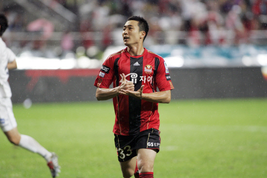 | ◇쿠웨이트전을 앞두고 A대표팀에 소집된 최태욱이 보은과 명예회복을 동시에 노리고 있다. FC서울 소속인 최태욱이 득점 후 세리머니를 하고 있다. 사진제공=FC서울 |