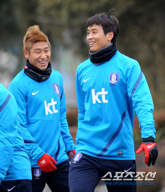 21일 오전 전남 영암 현대삼호중공업 사계절 잔디구장에서 최강희 감독이 이끄는 A대표팀이 훈련을 갖었다. 이동국과 이근호가 밝은 표정으로 훈련에 임하고 있다. 영암=송정헌 기자 songs@sportschosun.com