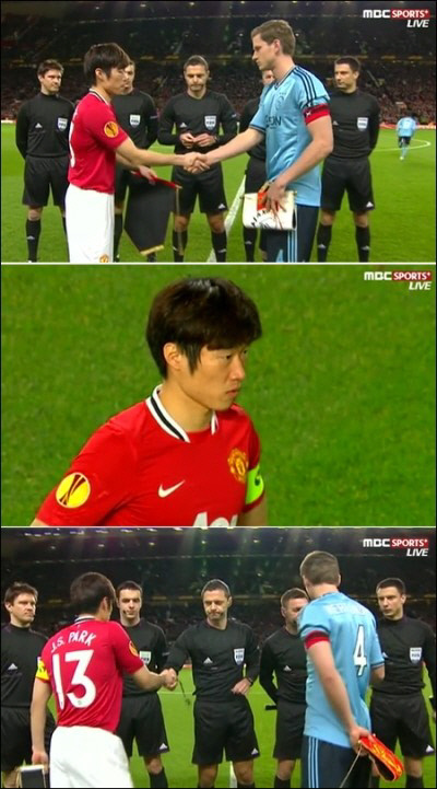 | 주장 완장을 찬 박지성. 사진캡처=MBC SPORTS+ 방송화면 |