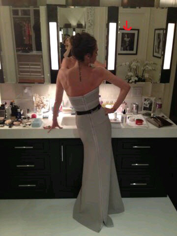하지만 영국 대중일간지 더선 등은 빅토리아의 뒤태보다 빅토리아의 드레스룸 벽에 걸려 있는 데이비드 베컴의 사진에 주목했다. 팬티 차림으로 특유의 근육질 몸매를 당당하게 드러낸 베컴의 사진이다.