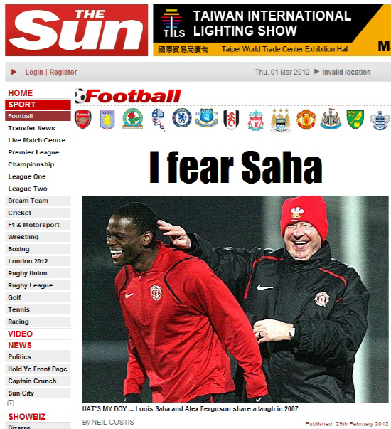 이어 퍼거슨 감독은 "그는 충분한 출전 시간을 가지지 않았음에도 엄청난 기량을 보여주고 있다"고 덧붙였다. 사하는 지난달 26일 아스널전에서 선제골을 터뜨리며 물오른 골 감각을 유지했다. 사하는 지난 12일 뉴캐슬전에서 두 골을 작렬시키며 팀의 5대0 대승을 이끈 바 있다.