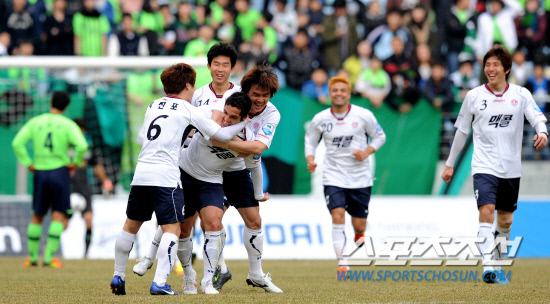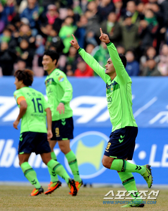 이동국은 통산 115골로 지난 시즌을 마감했다. 우성용(인천 2군 코치)의 K-리그 통산 최다골 기록에 1골 차로 다가선 이동국의 최다골 기록 경신은 시간 문제였다. 기대는 했다. 하지만 설마 했다. 이동국은 개막전에서 보란듯이 2골을 몰아넣으며 K-리그의 역사를 다시 썼다. 전반 13분과 전반 18분 5분새 2골을 터뜨렸다. 2월 최강희 감독의 첫 A매치 2경기에서 3골을 쏘아올린 골 감각을 K-리그로 고스란히 옮겨왔다. 역사적인 2골 모두 황보원이 도움을 기록했다. 골키퍼의 키를 슬쩍 넘기는 찍어차기, 낮은 패스를 이어받아 몸을 돌리며 밀어넣은 논스톱 슈팅 등 2골 모두 물오른 감각이 빛났다. 통산 최다골 기록을 경신한 직후 유니폼 팔부분의 K-리그 황금패치에 키스 세리머니를 펼쳤다. 주먹을 불끈 들어올리며 자랑스런 K-리그의 힘을 만방에 과시했다. 자신을 믿어주고 키워낸 K-리그를 향한 감사와 애정을 감추지 않았다.