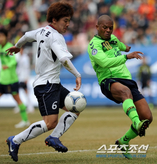 ◇3일 오후 전주월드컵경기장에서 현대오일뱅크 K리그 2012 개막전 전북현대와 성남일화의 경기가 열렸다. 전북 루이스와 성남 박진포가 볼 다툼을 벌이고 있다. 전주=송정헌 기자 songs@sportschosun.com/2012.3.3