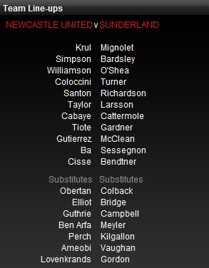 | ◇4일 뉴캐슬-선덜랜드전 라인업 출처=선덜랜드 공식 홈페이지 |