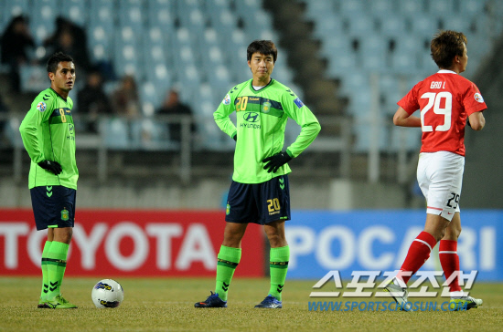 전북은 7일 전주월드컵경기장에서 열린 2012년 아시아챔피언스리그 조별리그 H조 1차전에서 광저우에 1대5로 패했다. 전북은 이날 대패로 ACL 예선 통과를 벌써부터 걱정하게 생겼다. 트레이드마크인 '닥공(닥치고 공격)'은 광저우를 상대로는 통하지 않았다. 오히려 광저우의 압박 축구에 제대로 된 공격 한번 해 보지 못하고 눈물을 삼켜야 했다.