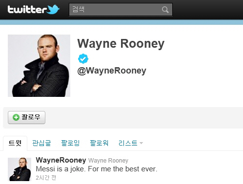 루니는 8일 새벽 열린 바르셀로나와 바이엘 레버쿠젠의 유럽챔피언스리그 16강전 2차전을 보는 도중 자신의 트위터에 글을 남겼다. 루니는 '메시는 말도 안된다. 내게는 정말 최고다(Messi is a joke. For me the best ever)'라고 썼다. 이날 메시는 혼자 5골을 몰아쳤고 바르셀로나는 7대1 대승을 거두었다. 유럽챔피언스리그 한경기 5골은 역사상 처음이다.
