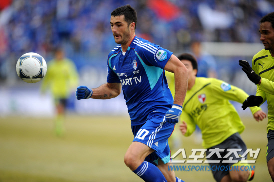 강원은 수원의 공세 속에 김은중과 웨슬리, 시마다를 앞세워 공세를 펼쳤다. 하지만 수원 수비에 막혀 이렇다할 득점 찬스를 만들지 못했다. 후반 중반 김은중이 부상으로 교체되는 등 운이 따라주지 않았다.수원=박상경 기자 ppark@sportschosun.com