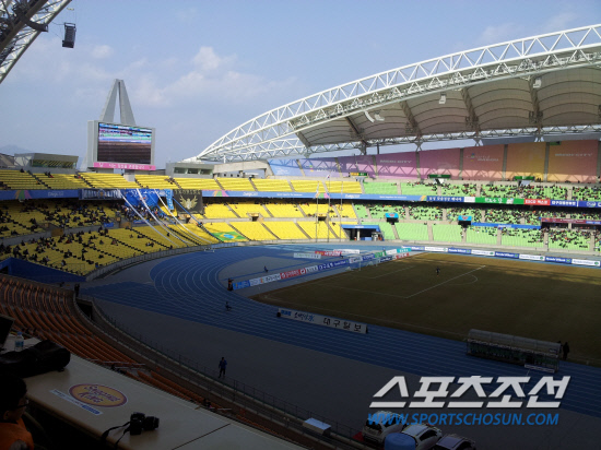 하지만 아쉬움이 있었다. 경기장 좌석이 6만6000여석이었던 탓에 6000여명이 입장한 거 같아 보이지 않았다. 관중들은 곳곳으로 흩어졌다. 가장 큰 문제는 태양이었다. 대구는 한반도에서 가장 더운 지역이다. 초봄이지만 태양은 강렬하다. 특히 일반석은 직사광선이 바로 내리 쬐는 지역이다. 앉아있으면 금방 피부가 타버린다. 관중들은 그늘이 지는 2층으로 향했다. 1층에 앉은 관중들 역시 그늘을 따라 앉아있었다. 명당은 1층 관중석 뒤 통로였다. 그늘이 진데다 경기를 중계해주는 TV가 설치되어 있다. 500여 명의 관중들은 통로에 서서 경기를 지켜봤다.