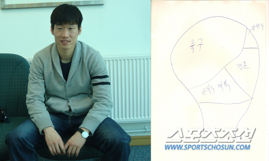 서른 한 살. 박지성은 혼기가 찼다. 그래서 '대한민국 최고의 신랑감'은 1년에 한 두번씩 결혼 스캔들에 시달린다. 지난 1월에는 미인대회 출신 사업가와의 결혼설이 인터넷을 뜨겁게 달구기도 했다. 그만큼 박지성의 결혼 소식은 축구계에 큰 파장을 일으킬 대형 이슈다. 박지성에게 '결혼은 언제쯤 하고 싶냐'고 물었다. 그러자 "지금이라도 좋은 여성이 나타난다면 당장 하고 싶다"는 대답이 돌아왔다. 그렇다면 현재 박지성은 결혼에 얼마나 큰 비중을 두고 있을까. 박지성이 직접 그린 자신의 뇌구조를 통해 살펴보자.