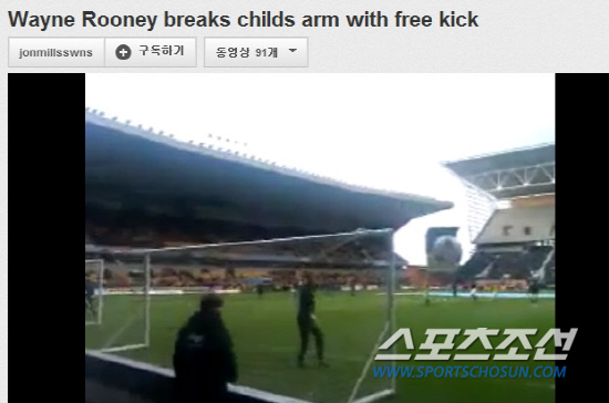 9세 어린이의 팔목을 부러뜨린 루니의 슈팅. 사진캡쳐=유튜브