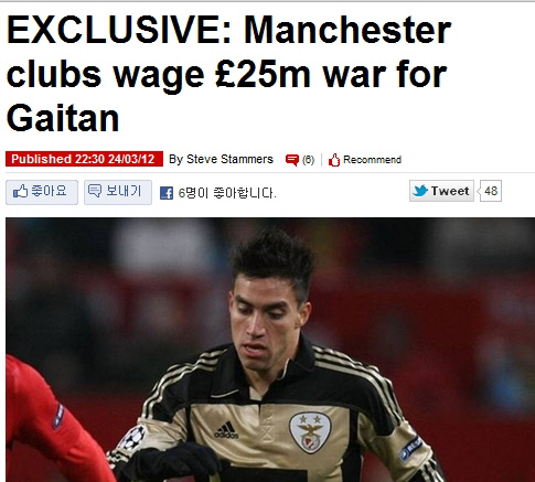 맨유와 맨시티가 벤피카의 윙어 니콜라스 가이탄을 두고 한판 붙었다.